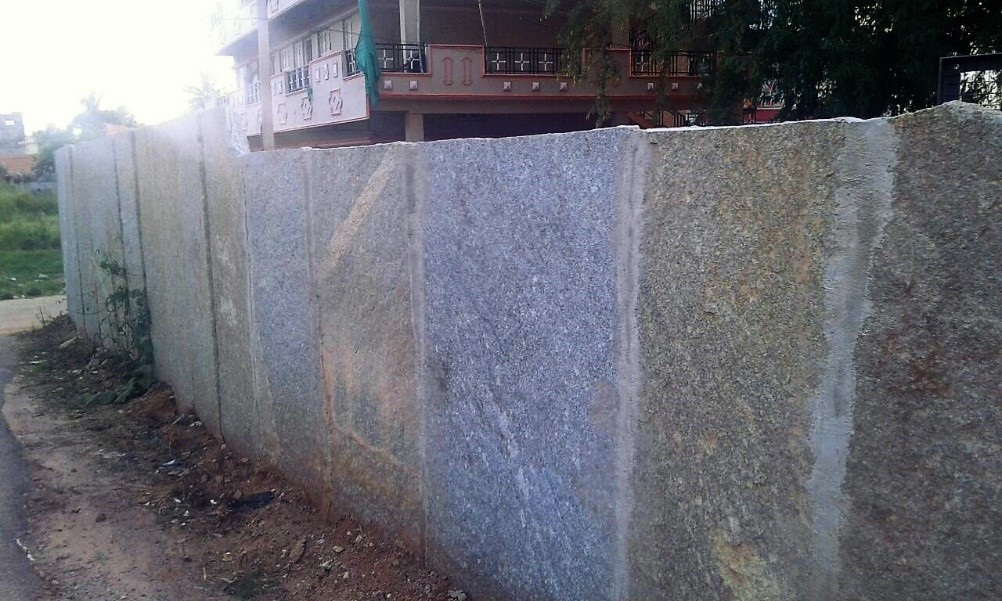 Allereerst is besloten om geen draadhek te plaatsen maar een hek van granieten platen. Dit is een traditionele manier van landafscheiding in de provincie Karnataka. De granieten platen zijn 12 cm dik, 90 cm breed en 2 meter hoog. Deze platen worden ongeveer 3 cm diep in de grond geplaatst.