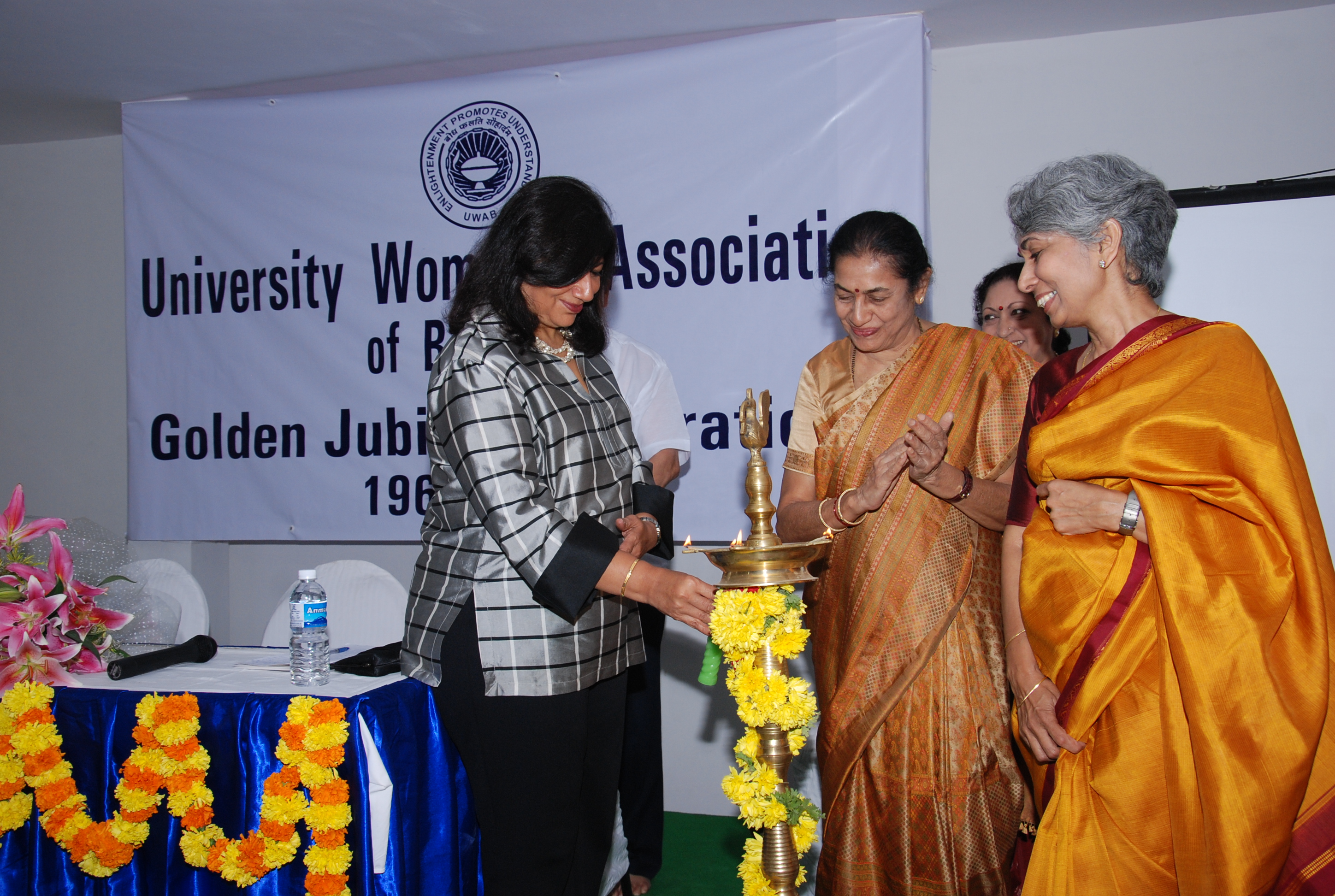 De ceremonie werd verricht door Dr. Kiran Mazumdar Shaw (links op de foto linksboven), voorzitter van de Raad van Bestuur van BIOCON. Zij heeft dankzij een beurs van de UWA-moederorganisatie kunnen studeren in Australië en is dus een lichtend voorbeeld hoe je – met een zetje in de rug – het als vrouw ver kan schoppen in het Indiase zakenleven.